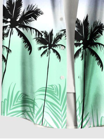 Chemise à Manches Courts > Chemise hawaïenne grande taille à imprimé cocotiers ombré et colorblock, boutons et poches, pour homme