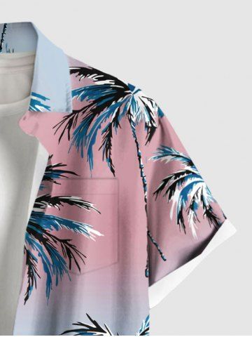 Chemise à Manches Courts > Chemise hawaïenne grande taille à imprimé cocotiers ombré et colorblock, boutons et poches, pour homme