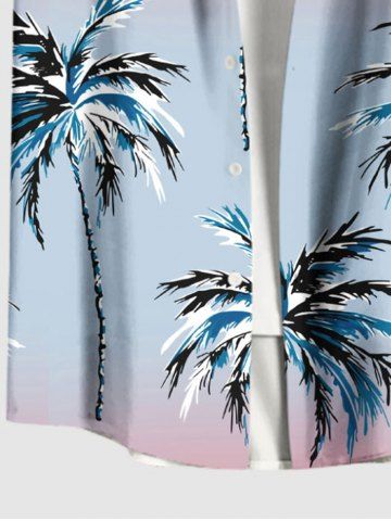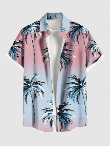 Chemise hawaïenne grande taille à imprimé cocotiers ombré et colorblock, boutons et poches, pour homme - Bleu Clair - Bleu Clair