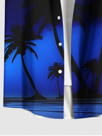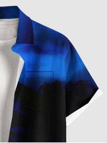 Chemise hawaïenne grande taille à imprimé cocotiers ombré et poches boutonnées pour homme - Bleu - Bleu