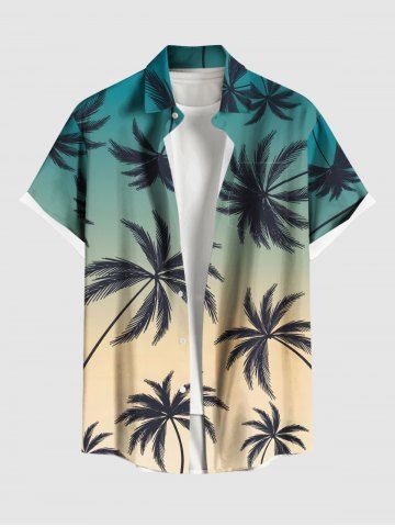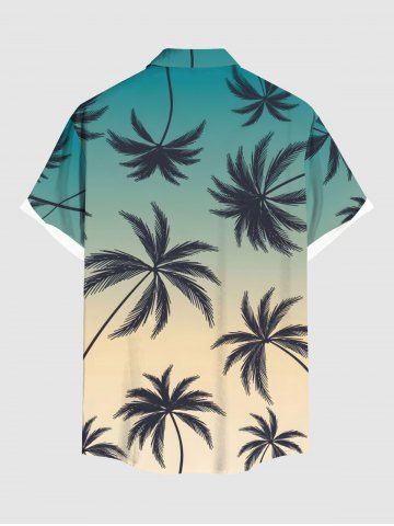 Chemise hawaïenne grande taille à imprimé cocotiers ombré et poches boutonnées pour homme - Vert - Vert