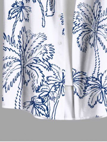Chemise hawaïenne grande taille à imprimé cocotiers peints à la main avec poches boutonnées pour homme - Blanc - Blanc