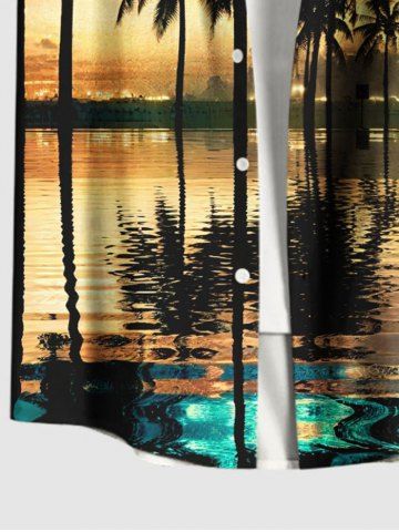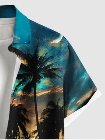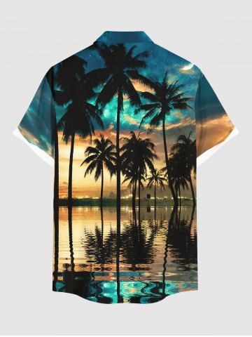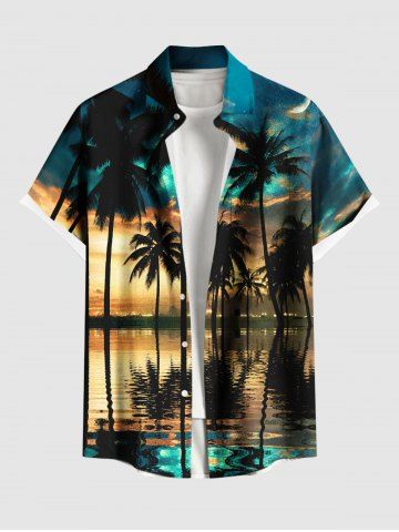 Chemise à Manches Courts> Chemise hawaïenne grande taille à imprimé cocotiers, reflets marins et nuages, avec poches et boutons, pour homme