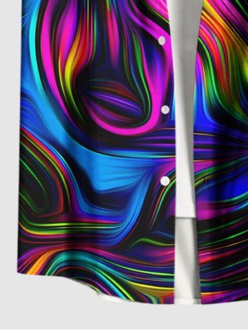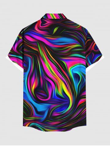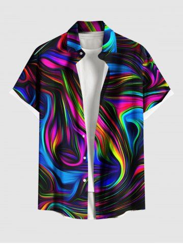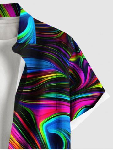 Chemise à Manches Courts> Chemise hawaïenne grande taille à imprimé courants océaniques colorés et poches à boutons pour homme