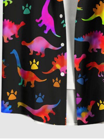 Chemise hawaïenne grande taille à imprimé dinosaure coloré et poches à boutons pour homme - Noir - Noir