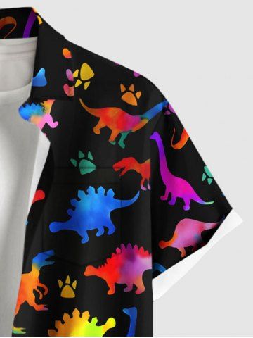 Chemise hawaïenne grande taille à imprimé dinosaure coloré et poches à boutons pour homme - Noir - Noir