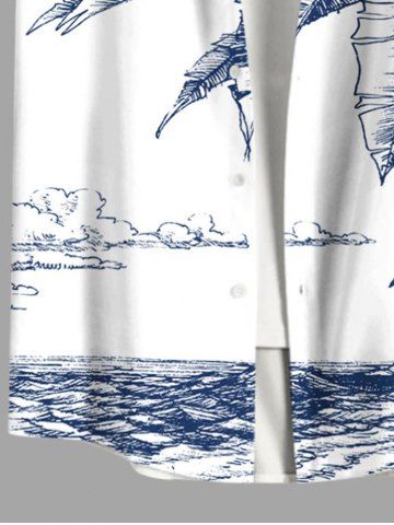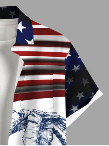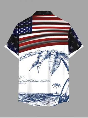 Chemise hawaïenne grande taille à imprimé drapeau américain, feuilles tropicales, cocotiers, boutons et poches pour homme - Blanc - Blanc