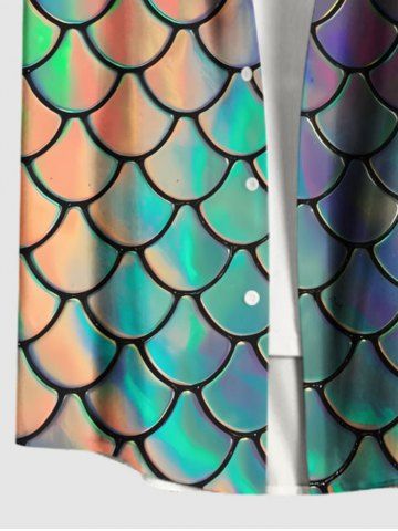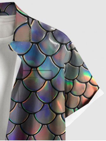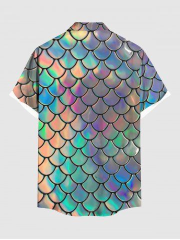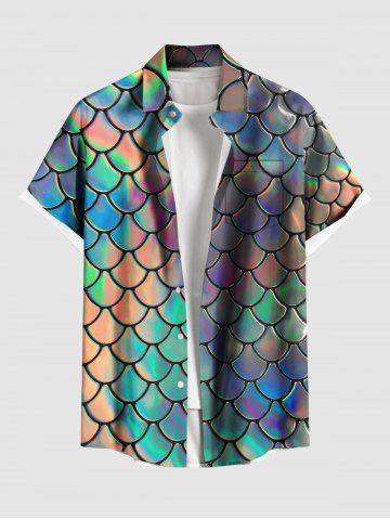 Chemise hawaïenne grande taille à imprimé écailles de sirène colorées et boutons avec poches pour homme - Multi-b - Xl