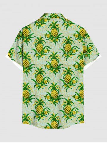 Chemise hawaïenne grande taille à imprimé feuilles d'ananas, boutons et poches pour homme - Vert Clair - Vert Clair