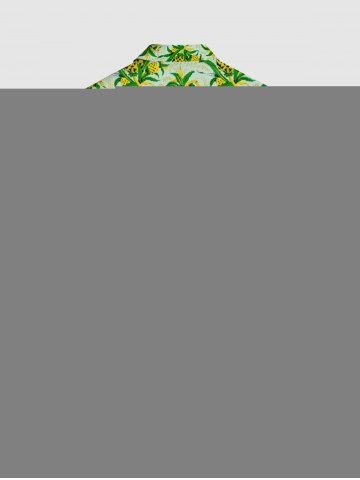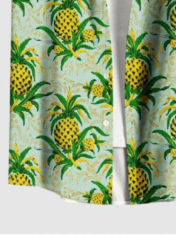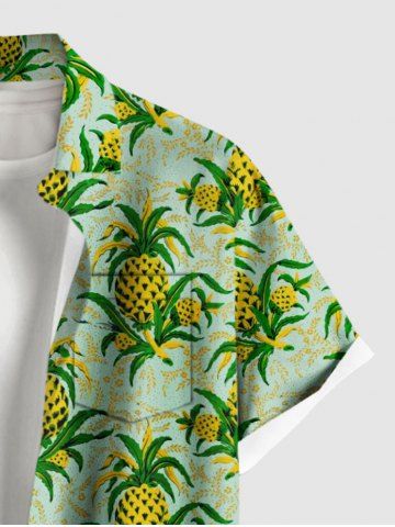 Chemise hawaïenne grande taille à imprimé feuilles d'ananas, boutons et poches pour homme - Vert Clair - Vert Clair