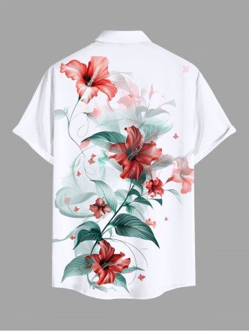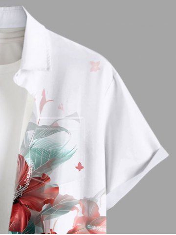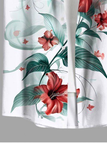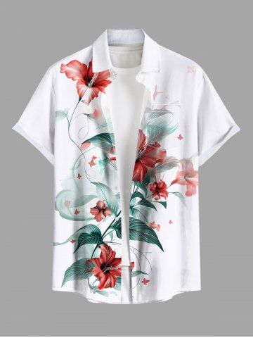 Chemise hawaïenne grande taille à imprimé feuilles d'hibiscus et boutons avec poches pour homme - Blanc - Blanc