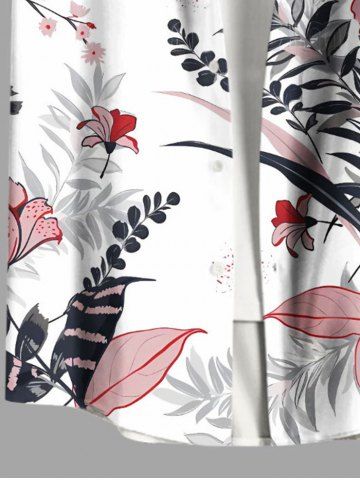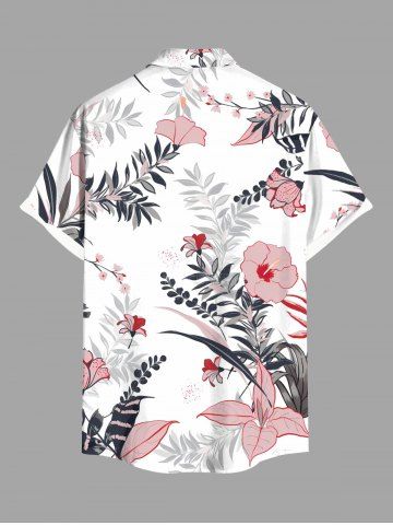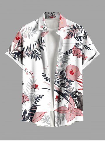 Chemise hawaïenne grande taille à imprimé feuilles d'hibiscus et boutons avec poches pour homme - Blanc - Blanc