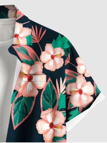 Chemise à Manches Courts> Chemise hawaïenne grande taille à imprimé feuilles d'hibiscus et boutons avec poches pour homme