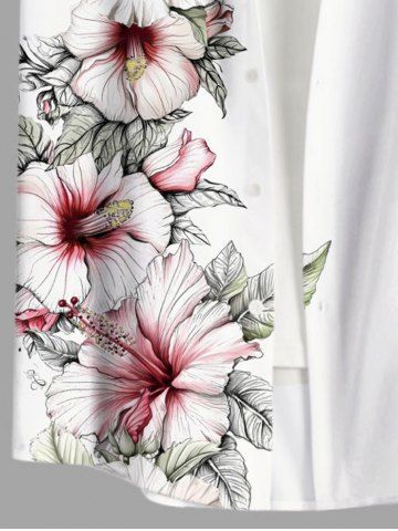 Chemise hawaïenne grande taille à imprimé feuilles d'hibiscus et boutons avec poches pour homme - Blanc - Blanc