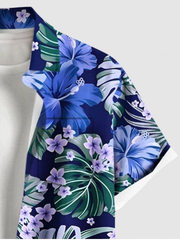 Chemise à Manches Courts> Chemise hawaïenne grande taille à imprimé feuilles d'hibiscus et boutons avec poches pour homme