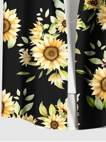 Chemise hawaïenne grande taille à imprimé feuilles de tournesol et poches boutonnées pour homme - Noir - Noir