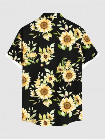 Chemise hawaïenne grande taille à imprimé feuilles de tournesol et poches boutonnées pour homme - Noir - Noir