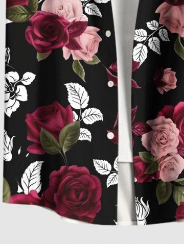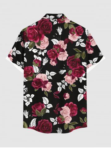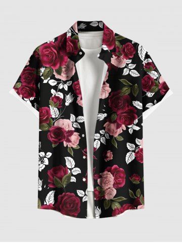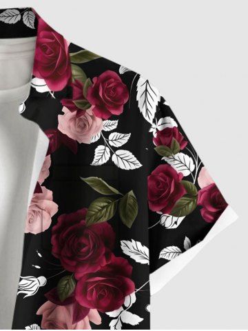 Chemise hawaïenne grande taille à imprimé feuilles et fleurs roses pour homme - Noir - Noir