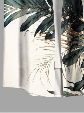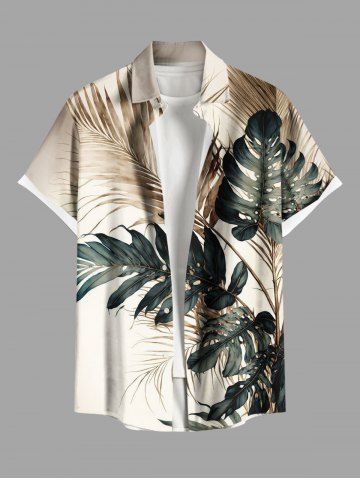 Chemise hawaïenne grande taille à imprimé feuilles tropicales, boutons et poches pour homme - Blanc - Blanc