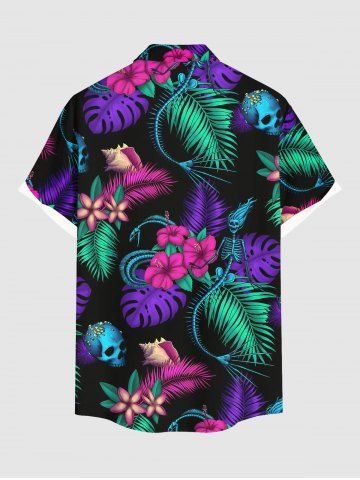 Chemise hawaïenne grande taille à imprimé feuilles tropicales colorées, fleurs, crâne, squelette, sirène, serpent, pour homme - Noir - Noir