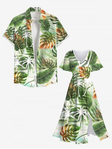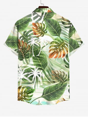 Chemise hawaïenne grande taille à imprimé feuilles tropicales et cocotiers, avec poches boutonnées, pour homme - Vert - Vert