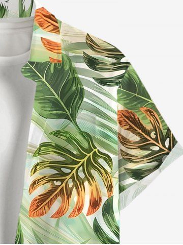 Chemise à Manches Courts> Chemise hawaïenne grande taille à imprimé feuilles tropicales et cocotiers, avec poches boutonnées, pour homme
