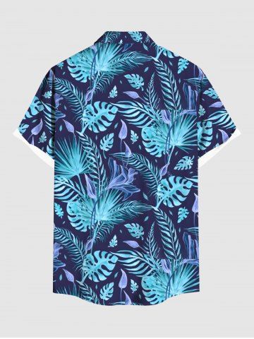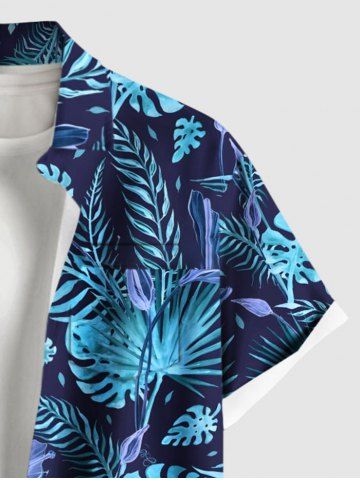 Chemise hawaïenne grande taille à imprimé feuilles tropicales et fleurs, avec poches et boutons, pour homme - Bleu Ciel - Bleu Ciel