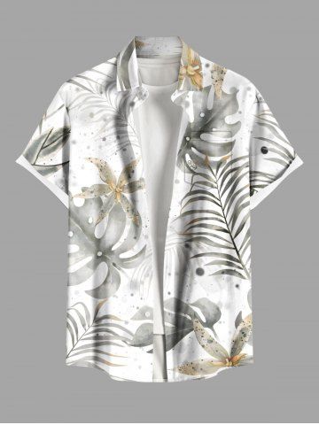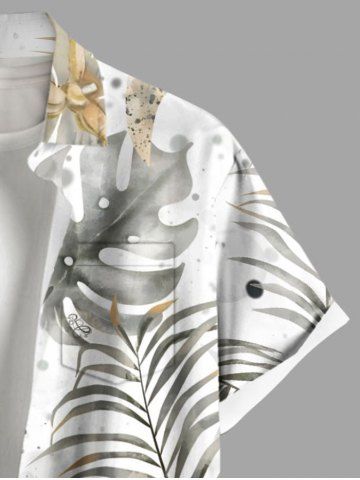 Chemise hawaïenne grande taille à imprimé feuilles tropicales et fleurs, avec poches et boutons, pour homme - Blanc - Blanc
