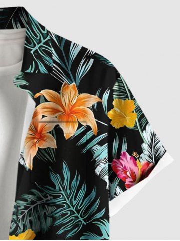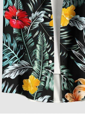 Chemise hawaïenne grande taille à imprimé feuilles tropicales et fleurs d'hibiscus, avec poches et boutons, pour homme - Noir - Noir