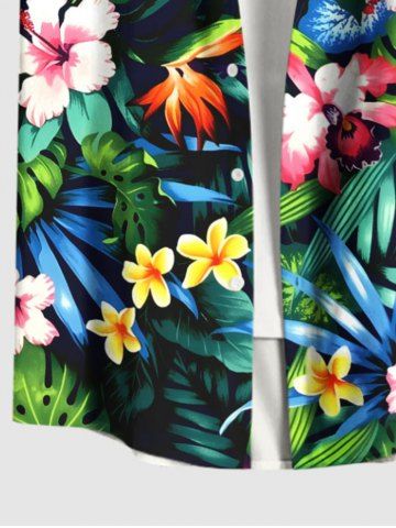 Chemise à Manches Courts> Chemise hawaïenne grande taille à imprimé feuilles tropicales et fleurs d'hibiscus, avec poches et boutons, pour homme