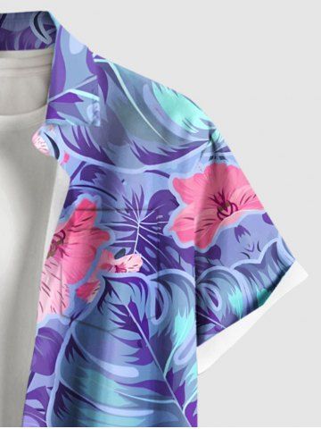 Chemise hawaïenne grande taille à imprimé feuilles tropicales et fleurs d'hibiscus, avec poches et boutons, pour homme - Violet Clair - Violet Clair