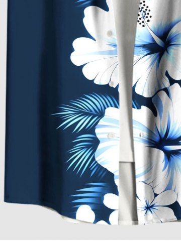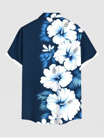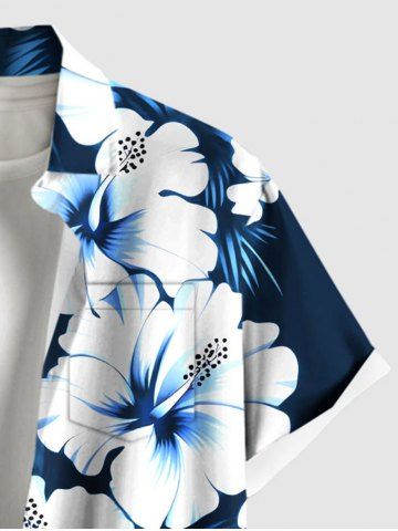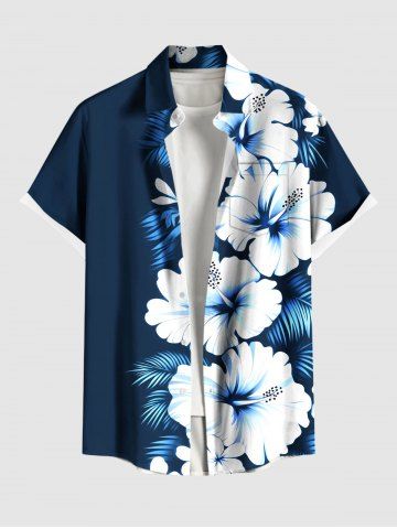 Chemise hawaïenne grande taille à imprimé feuilles tropicales et fleurs d'hibiscus, avec poches et boutons, pour homme - Bleu De Minuit - L