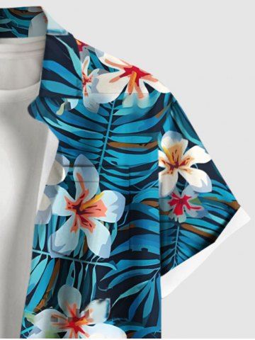 Chemise hawaïenne grande taille à imprimé feuilles tropicales et fleurs d'hibiscus, avec poches et boutons, pour homme - Bleu Ciel - Bleu Ciel