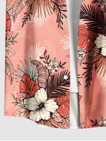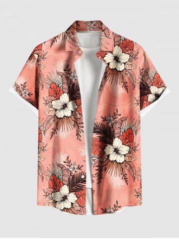 Chemise hawaïenne grande taille à imprimé feuilles tropicales et fleurs d'hibiscus, avec poches et boutons, pour homme - Rose Clair - Rose Léger