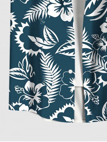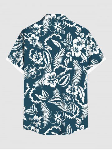 Chemise hawaïenne grande taille à imprimé feuilles tropicales et fleurs d'hibiscus, avec poches et boutons, pour homme - Paon Bleu - M