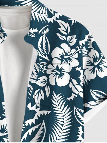 Chemise à Manches Courts> Chemise hawaïenne grande taille à imprimé feuilles tropicales et fleurs d'hibiscus, avec poches et boutons, pour homme