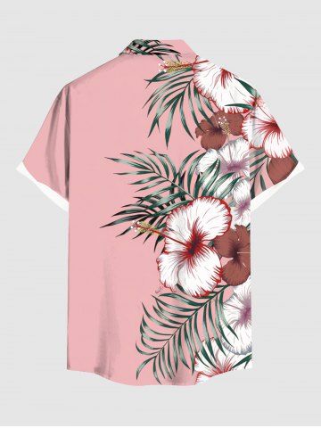 Chemise hawaïenne grande taille à imprimé feuilles tropicales et fleurs d'hibiscus, avec poches et boutons, pour homme - Rose Clair - Rose Léger
