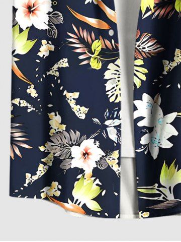 Chemise hawaïenne grande taille à imprimé feuilles tropicales et fleurs d'hibiscus, avec poches et boutons, pour homme - Bleu Marine - Bleu Marin