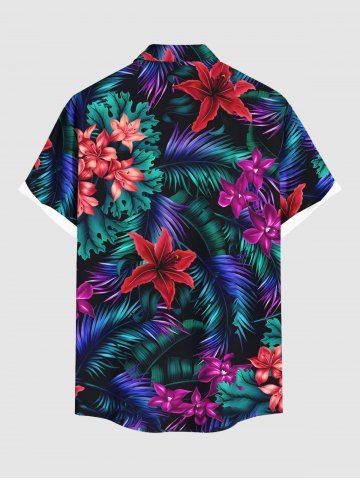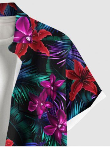 Chemise hawaïenne grande taille à imprimé feuilles tropicales et fleurs d'hibiscus ombré avec poches boutonnées pour homme - Noir - Noir