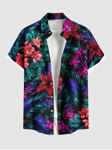 Chemise à Manches Courts> Chemise hawaïenne grande taille à imprimé feuilles tropicales et fleurs d'hibiscus ombré avec poches boutonnées pour homme