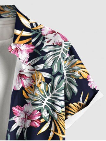 Chemise à Manches Courts> Chemise hawaïenne grande taille à imprimé feuilles tropicales et fleurs d'hibiscus pour homme