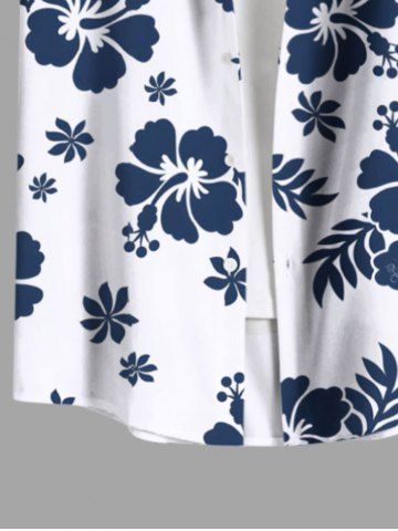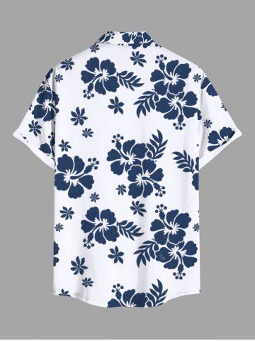 Chemise hawaïenne grande taille à imprimé feuilles tropicales et fleurs d'hibiscus pour homme - Blanc - Blanc