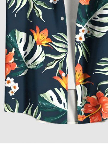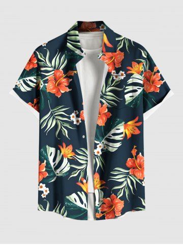 Chemise à Manches Courts> Chemise hawaïenne grande taille à imprimé feuilles tropicales et fleurs d'hibiscus pour homme