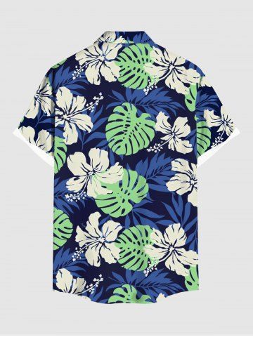 Chemise hawaïenne grande taille à imprimé feuilles tropicales et fleurs d'hibiscus pour homme - Bleu Marine - Bleu Marin
