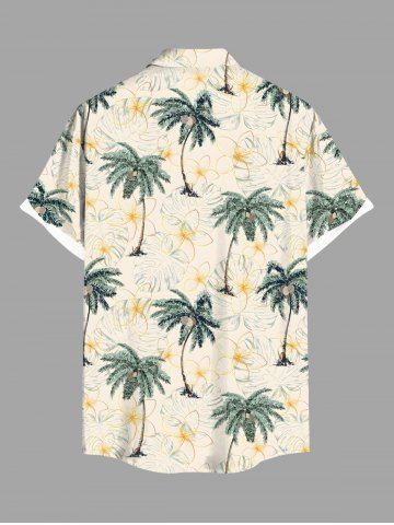 Chemise à Manches Courts> Chemise hawaïenne grande taille à imprimé feuilles tropicales et fleurs de cocotiers, boutons et poches pour homme