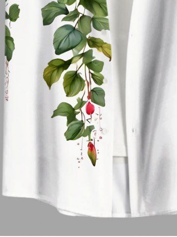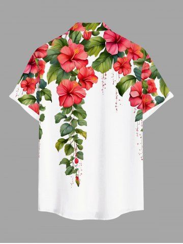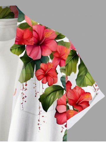 Chemise hawaïenne grande taille à imprimé feuilles tropicales, hibiscus, branches et boutons pour homme - Blanc - Blanc