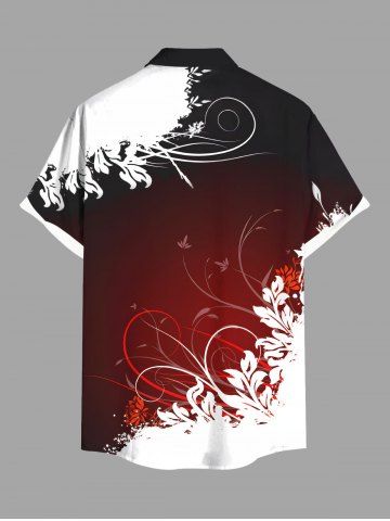 Chemise hawaïenne grande taille à imprimé feuilles tropicales ombré colorblock et boutons avec poches pour homme - Rouge Foncé - 3xl