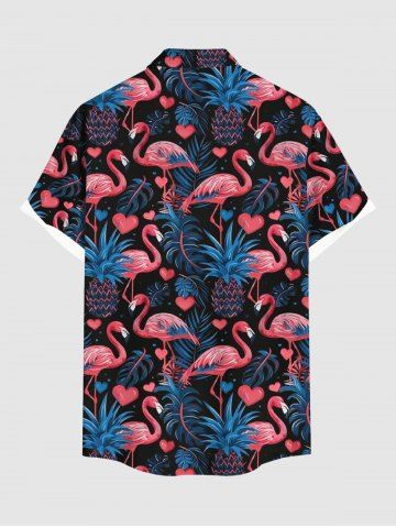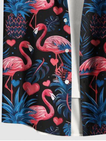 Chemise à Manches Courts> Chemise hawaïenne grande taille à imprimé flamant rose, ananas et feuilles tropicales, avec poches et boutons, pour homme