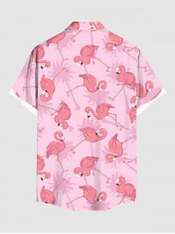 Chemise hawaïenne grande taille à imprimé flamant rose et cocotier, avec poches et boutons, pour homme - Rose Clair - Rose Léger