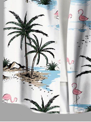 Chemise hawaïenne grande taille à imprimé flamant rose et cocotier pour homme - Blanc - Blanc